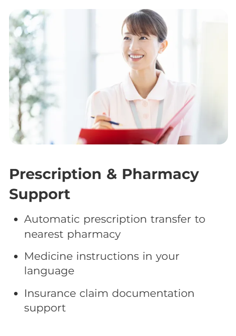 ・We can also issue prescriptions in Japan for routine medicines you may need during your trip.